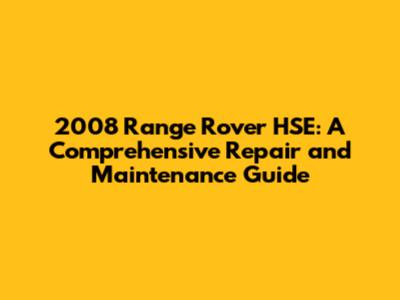 2008 Range Rover HSE: Ultimate Repair & Maintenance
