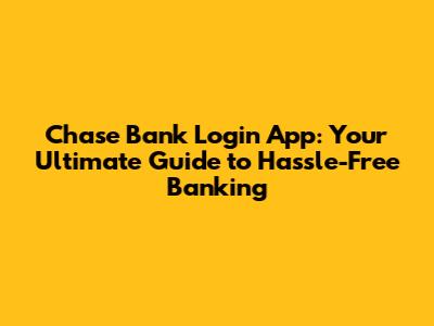 Chase Bank Login App: Your Ultimate Guide to Hassle-Free Banking