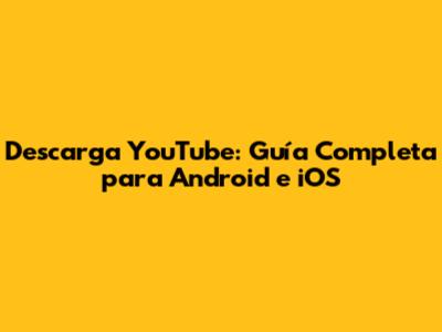 Descarga YouTube: Guía Completa Para Android E IOS