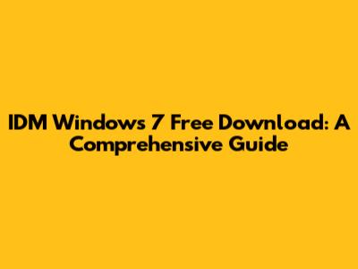 IDM For Windows 7: Free Download Guide