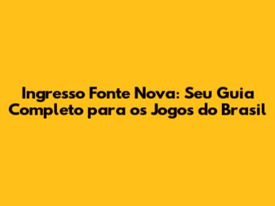 Ingresso Fonte Nova: Tudo Sobre Os Jogos Do Brasil