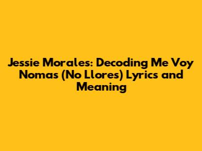 Hey guys! Have you ever stumbled upon a song that just hits you right in the feels, even if you don't fully understand the language? That's how I felt when I first heard Jessie Morales' "Me Voy Nomas (No Llores)." This song is a classic in the Regional Mexican music scene, and the raw emotion in Jessie's voice is undeniable. But what's it all about? Let's dive into the lyrics and unpack the meaning behind this heart-wrenching tune, so next time you hear it, you'll be singing along with even more passion!