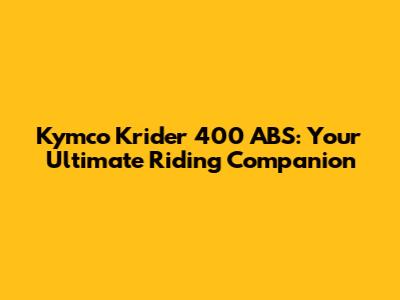Hey guys, let's dive into the awesome world of the Kymco Krider 400 ABS! If you're on the hunt for a motorcycle that blends performance, style, and safety, then you've landed in the right spot. The Kymco Krider 400 ABS isn't just another bike; it's engineered to give you an exhilarating and secure riding experience, whether you're navigating city streets or hitting the open road. We're going to break down what makes this machine a standout choice for riders of all levels, exploring its key features, performance aspects, and why the ABS system is a total game-changer. Get ready to discover your next two-wheeled adventure companion!