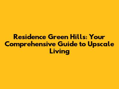 Living In Residence Green Hills: A Comprehensive Guide