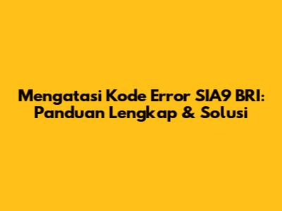 Mengatasi Kode Error SIA9 BRI: Panduan Lengkap & Solusi