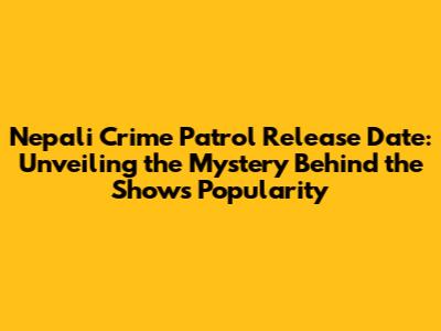 Unveiling the Nepali Crime Patrol Release Date and Broadcasting Details