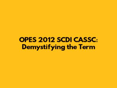 OPES 2012 SCDI CASSC: Explained Simply