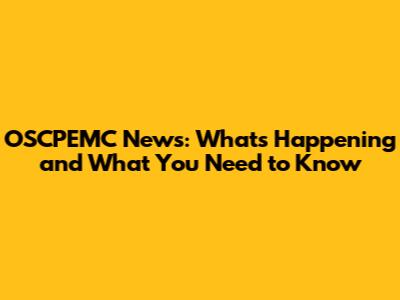 OSCPEMC News: What's Happening And What You Need To Know