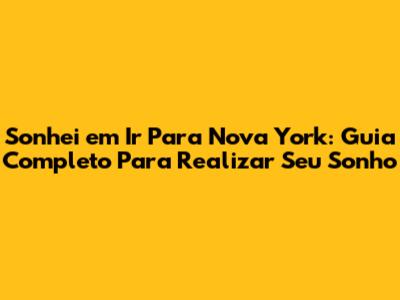 Sonhei Em Ir Para Nova York: Guia Completo Para Realizar Seu Sonho