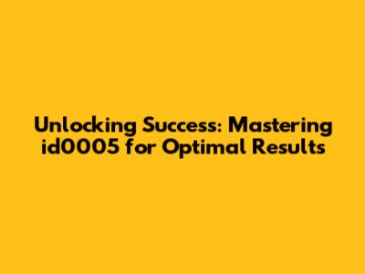 Unlocking Success: Mastering Id0005 For Optimal Results