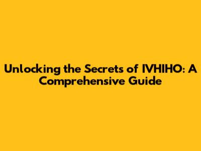 Unlocking The Secrets Of IVHIHO: A Comprehensive Guide