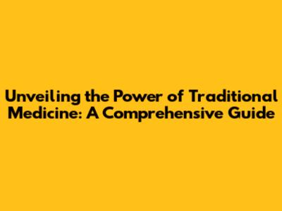 Unveiling The Power Of Traditional Medicine: A Comprehensive Guide